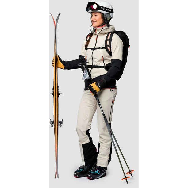 Based on a movement-driven pattern that features robust Durastretch softshell panels with lighter weight inserts, this pant provides all-day comfort for active use in cold conditions. Both fabrics are treated with a PFC-free durable water repellent (DWR) finish to repel water and stop them becoming saturated, keeping them breathable. The athletic-fit also includes an ergonomic, high-set waist with rear stretch inserts and loops for braces, a leg gusset for full freedom of movement – think kick turns, ergonomic pre-shaped knees, stretch, double-stitched seaming and generous leg ventilation zips. With two zip-secure pockets, instep patches to prevent crampon snags and ski cuts, a powder skirt and hem zips at the leg ends to guarantee a close fit over ski or mountain boots.